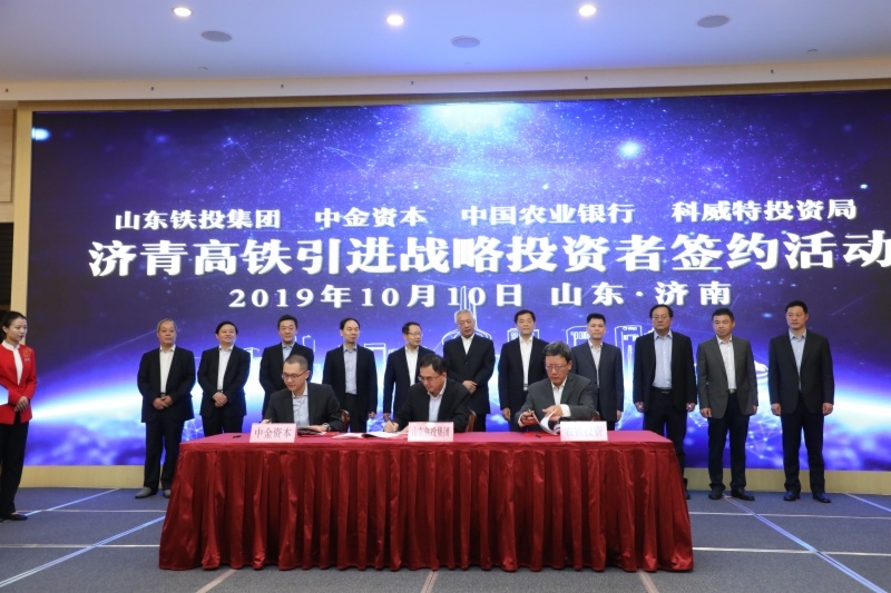 10月10日,濟青高鐵引進戰略投資者簽約活動在山東大廈舉行,山東省凌文副省長,發改委、國資委、交通廳、山東鐵投集團等主要負責人,中金資本、科威特投資局、農銀投資等機構投資者主要負責人出席會議。濟青高鐵作為國家鐵路投融資體制改革后第一條以地方為主投資建設的高速鐵路,本次引戰的成功是我省落實中央和山東省政府部署、探索中國高速鐵路項目投融資新模式、推動“雙招雙引”的重要舉措,標志著我省在加快推進基礎設施建設投融資改革方面又一次走在了全國前列。