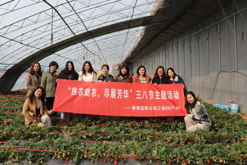 采摘草莓挖野菜,扶農助農展風采。魯南高鐵公司女職工乘車來到董家街道柿子村,在農戶指導幫助下,卷起褲腿,腳踩泥濘,幫助農戶采摘農作物果實。通過這次扶農助農活動,女職工切身感受到了田間勞作的艱辛和農民創收的不易,用實際行動展現了團結、有愛、互助精神。
