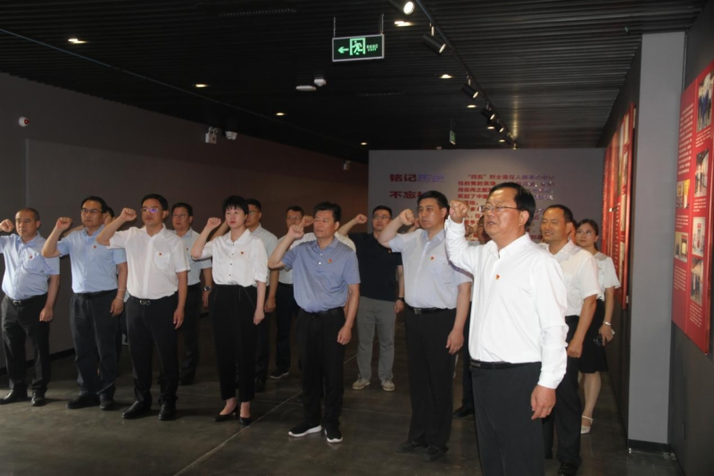 在講解員的指引下,大家深入學習了山東早期黨組織發展與斗爭史、“四五”烈士生平和革命事跡。在一張張斑駁的老照片和一件件飽經風霜的烈士遺物面前,大家仿佛回到了那個槍林彈雨、血雨腥風的崢嶸歲月,被“四五”烈士追求真理、獻身革命、堅守信仰、不屈不撓的革命精神深深感動。全體人員面對黨旗,重溫入黨誓詞,表達了對黨的堅定信念和真摯情感。
