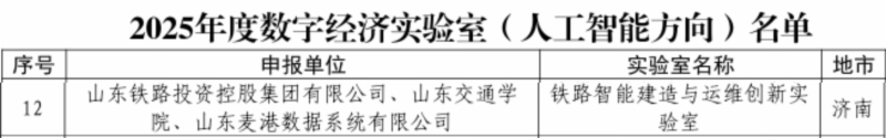 日前,山東省工業(yè)和信息化廳公布了2025年度山東數(shù)字經(jīng)濟創(chuàng)新平臺名單,集團牽頭申報的“鐵路智能建造與運維創(chuàng)新實驗室(人工智能方向)”成功入選,成為本次25家獲批單位之一,標志著集團在人工智能關(guān)鍵技術(shù)研究與創(chuàng)新應用方面邁出了堅實一步。
