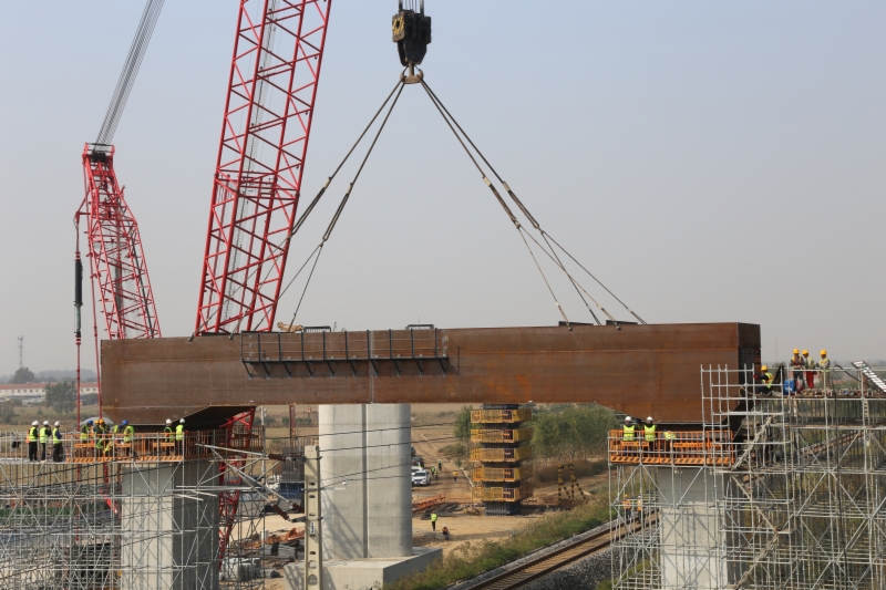 10月17日11時40分,隨著一聲“就位完畢”口令,濟濱高鐵商惠濱2號特大橋1724#墩上跨德大鐵路門式墩鋼蓋梁精準吊裝就位,標志著該標段重難點控制性工程取得重大進展,為項目后續架梁、鋪軌順利進行提供堅實保障。