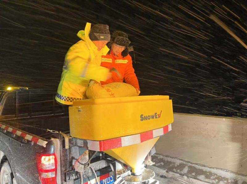本次除雪防滑保暢共出動人員70余人次,融雪劑撒布車、鏟雪車、保障巡查車等機械設備26臺次,撒布融雪劑6噸,保證了除雪應對工作快速有序推進。