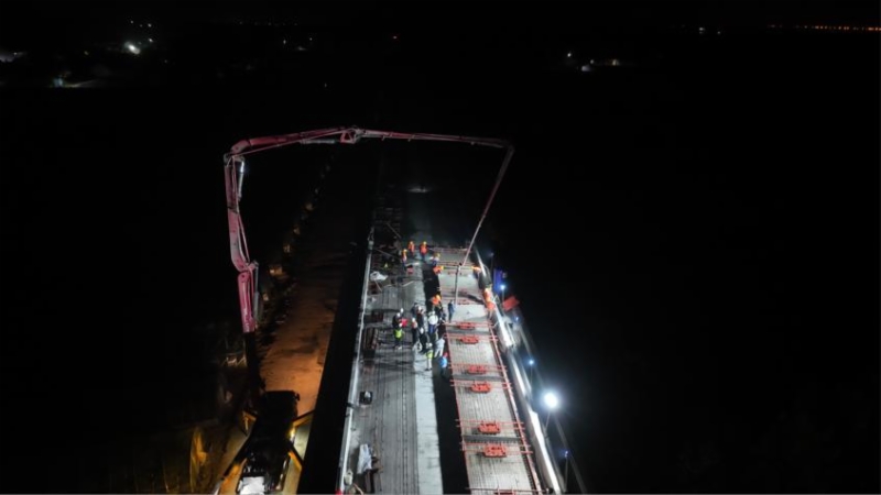 5月4日,濟濱高鐵首孔無砟軌道底座板在商惠濱2號特大橋第804孔梁面上順利澆筑完成,標志著項目正式進入無砟軌道施工階段。
