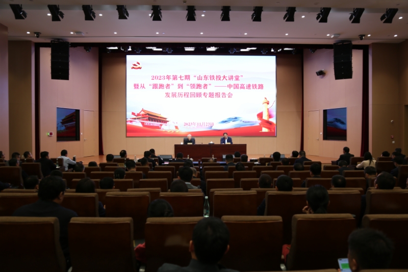 為進一步提升廣大干部職工專業素養和綜合能力,當好交通強國山東示范區建設開路先鋒,11月23日,集團舉辦2023年第七期“山東鐵投大講堂”暨“從‘跟跑者’到‘領跑者’——中國高速鐵路發展歷程回顧”的專題報告會,邀請中國工程院院士、原鐵道部常務副部長孫永福作報告。集團黨委書記、董事長姜長興及黨委領導班子成員出席報告會,集團黨委副書記、總經理王基全主持,集團高管、機關全體人員、各單位中層副職及以上人員參加報告會。