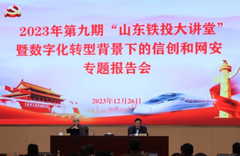為深入貫徹落實習近平總書記關于網絡安全和信息化工作的重要指示精神及省國資委關于信創工作部署要求,推進集團網絡安全和信創工作的建設,12月26日下午,集團舉辦第九期“山東鐵投大講堂”暨數字化轉型背景下的信創和網安專題講座,集團領導、高管、機關全體人員,各權屬單位中層副職及以上人員、信息化人員參加講座。